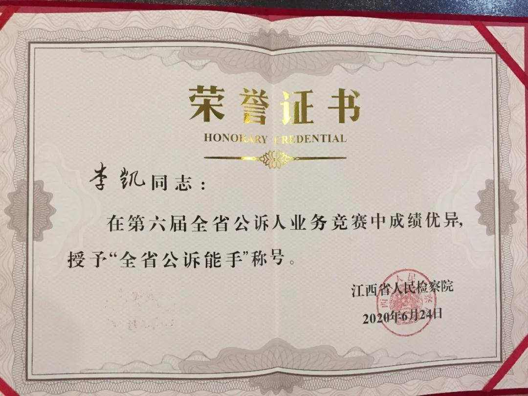 第三检察部员额检察官李凯荣获“全省公诉能手”称号。