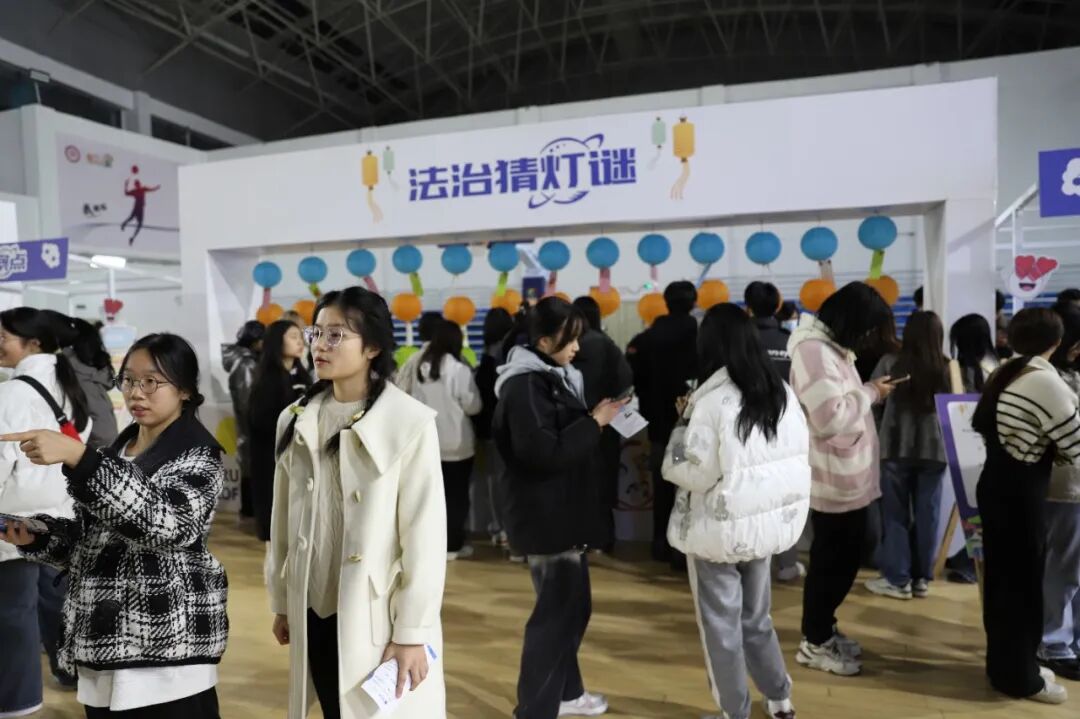 夜市现场,“法治猜灯谜”、“法治翻翻乐”、“套圈大作战”、“寄语我来签”、“解忧杂货铺”等摊位环形排列,检察干警化身摊主与学生们游戏互动,以奖促学,学有所乐,大大激发了学生的学法用法热情。
