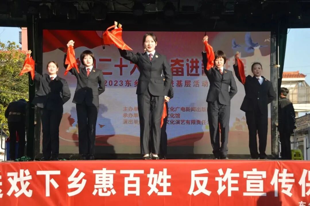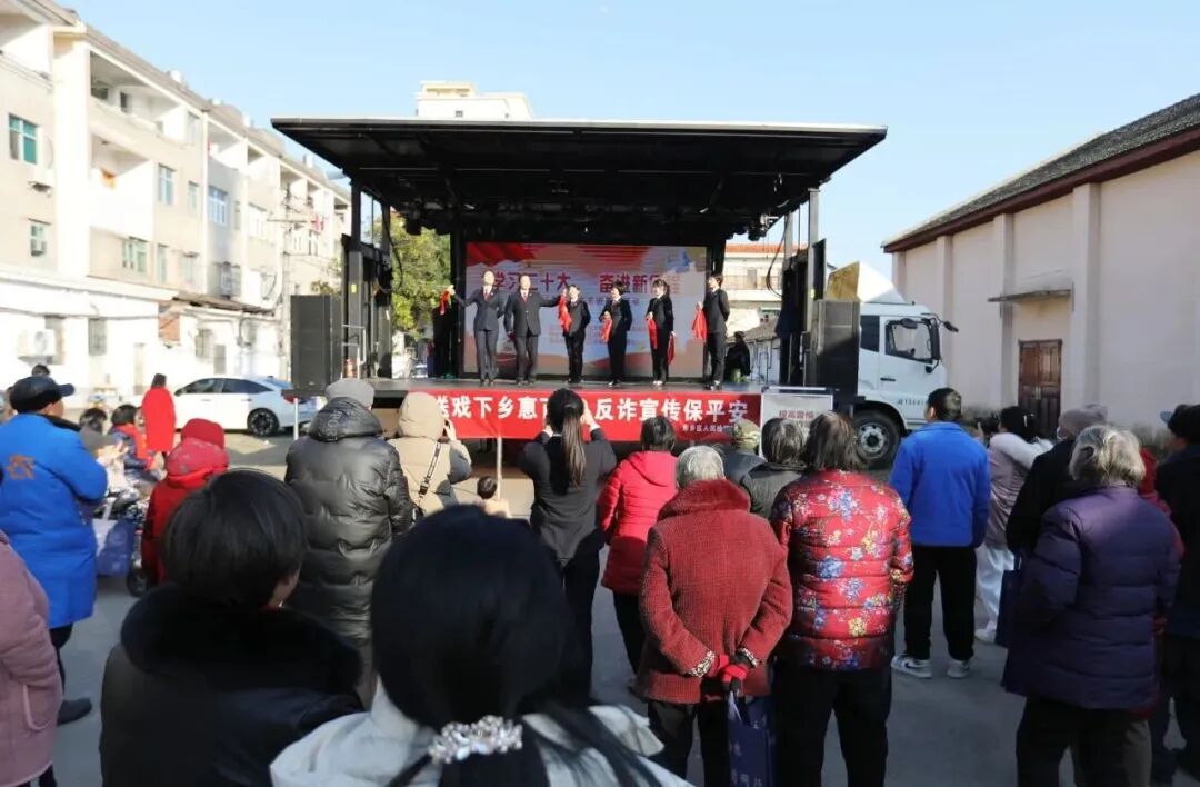 冬至当天,东乡区人民检察院联合区文广新旅局开着送戏下乡大篷车共同来到红星镇,开展“送戏下乡惠百姓 反诈宣传保平安”普法宣传活动,为当地群众带来不一样的法治体验。