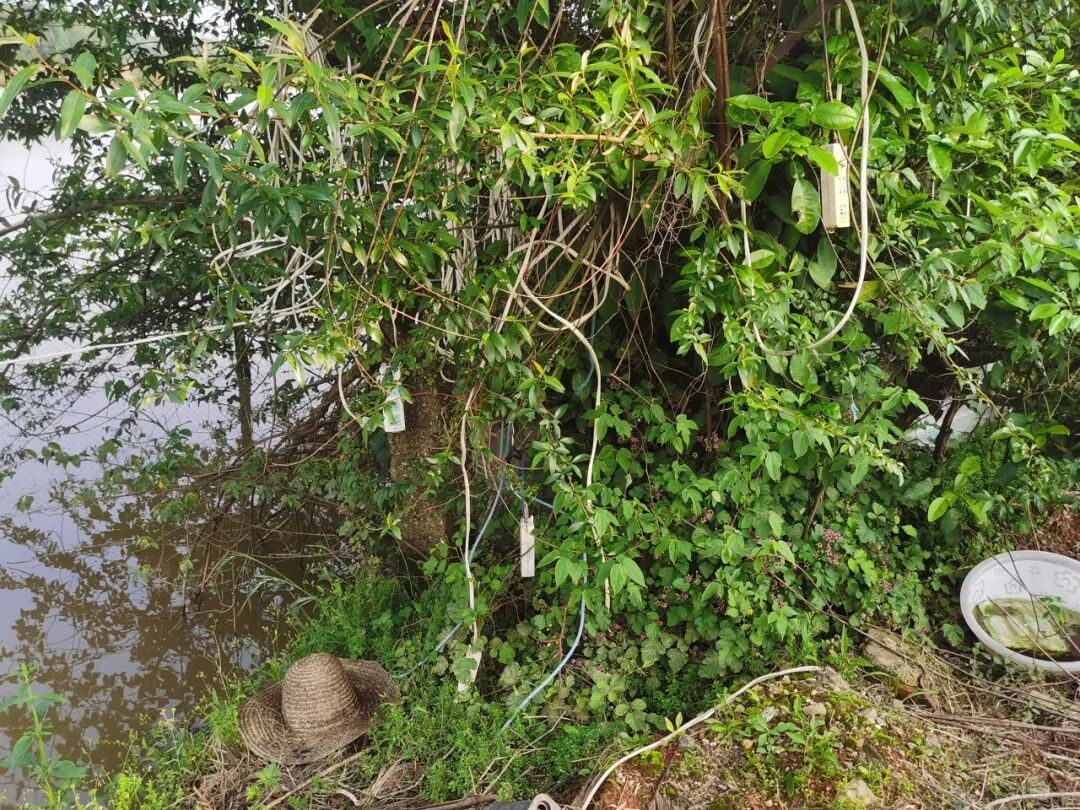 调查中发现,在我区农村农田飞线的情况较为普遍。飞线的电源一般有两种,一种是农户从自己家中取电,使用数十米甚至数百米长的排插电线,将电线从家中延伸至农户农田附近的河道、池塘。另外一种采取“就近原则”,农户直接将电线搭在路过河道、池塘的电力公司架设的电线上取电。平常农户将排插电线布置好后并不收取,在天气干旱需要用水时,农户将抽水电泵放在河中、池塘抽水,结束后将抽水泵收起来。