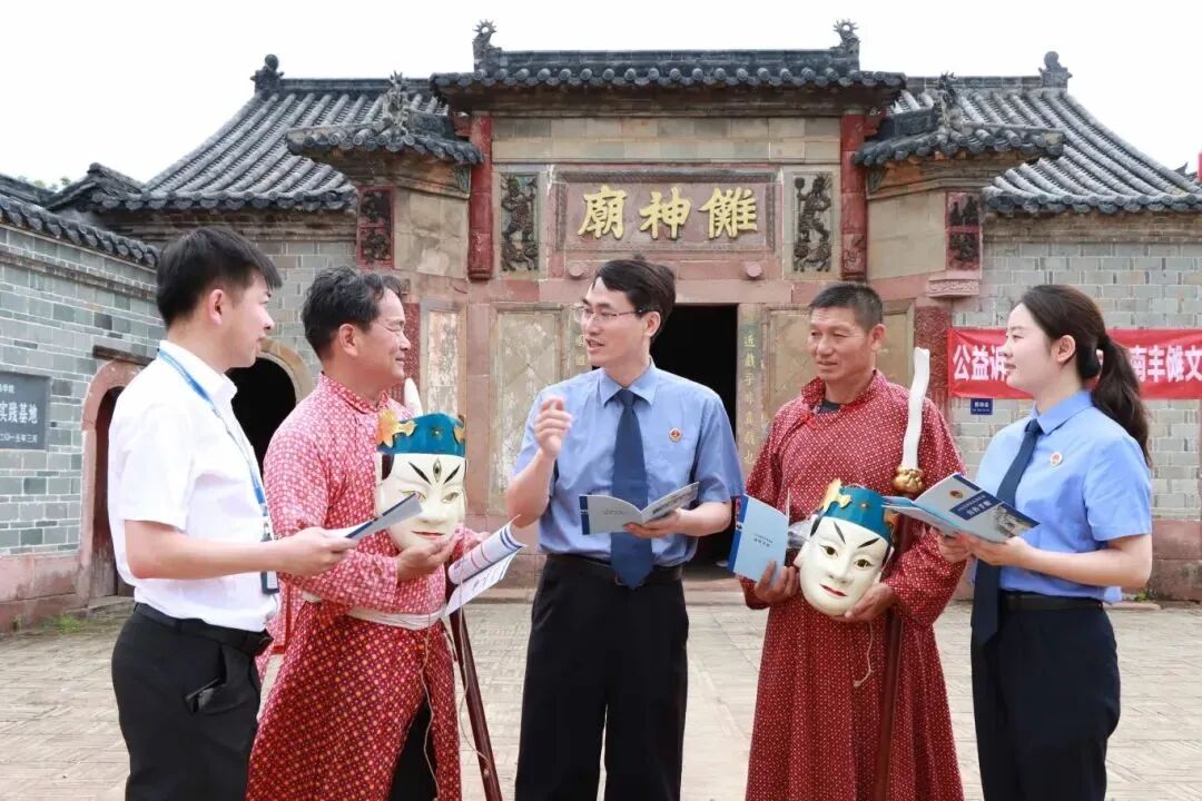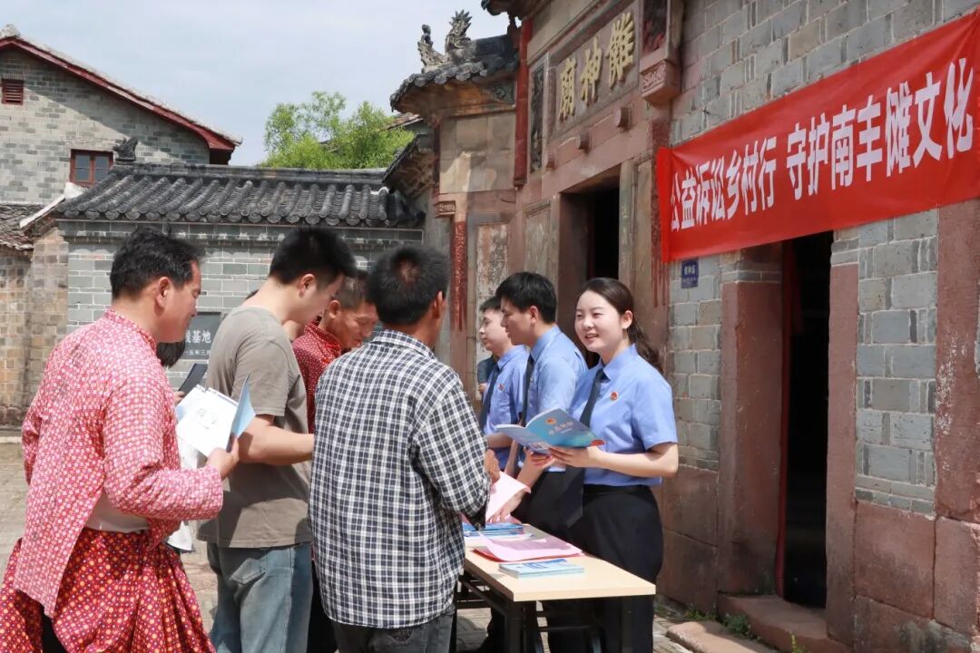南丰县检察院充分发挥检察职能,为促进国家非物质文化遗产全面保护,提高村民保护文化遗产意识,组织干警赴三溪乡石邮村开展“公益诉讼乡村行 守护南丰傩文化”活动。