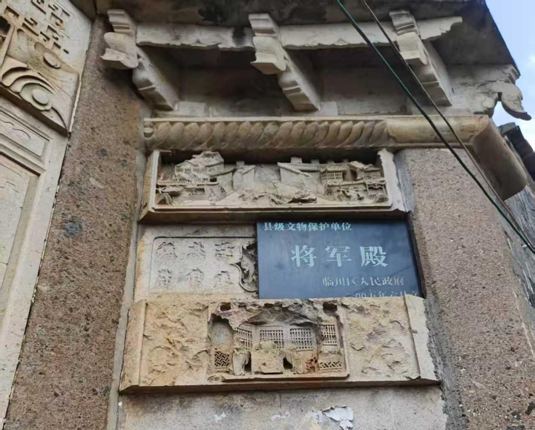 将军殿位于原梦港河西岸将军岑上,始建于明初(1368年),至今已有643年历史。主奉“车仂公菩萨”。据传,车仂是明末嵩湖本地一位勇义之士,亦有说法其为抗倭英雄。在一次保护乡民的战斗中,车仂英勇牺牲。百姓为感念其恩德,建庙塑像,尊为“车仂公菩萨”,世代祭祀。每年农历八月十三(相传为车仂将军诞辰或得道日)举行庙会,方圆百里的信众与游客纷至沓来,场面隆重,香火鼎盛。将军殿不仅是信仰场所,更承载着特定历史时期的建筑技艺、乡土文化和集体记忆,是临川地区民间信仰与传统文化活态传承的重要载体,具有较高的历史和文化价值。其标识错误、建设控制地带未依法划定等问题,影响文物保护工作的规范性和严肃性,亦损害社会公共利益。
