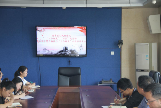 会后,南丰县人民检察院全体干警签订了南丰县司法人员严格执行“三个规定”公开承诺书。承诺坚决执行“三个规定”等制度规定,坚守办案纪律,恪守廉洁底线,维护司法权威。