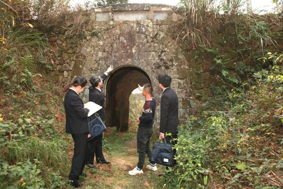 ▲南丰县检察院检察长杨忠东现场检查督促古建筑修缮
