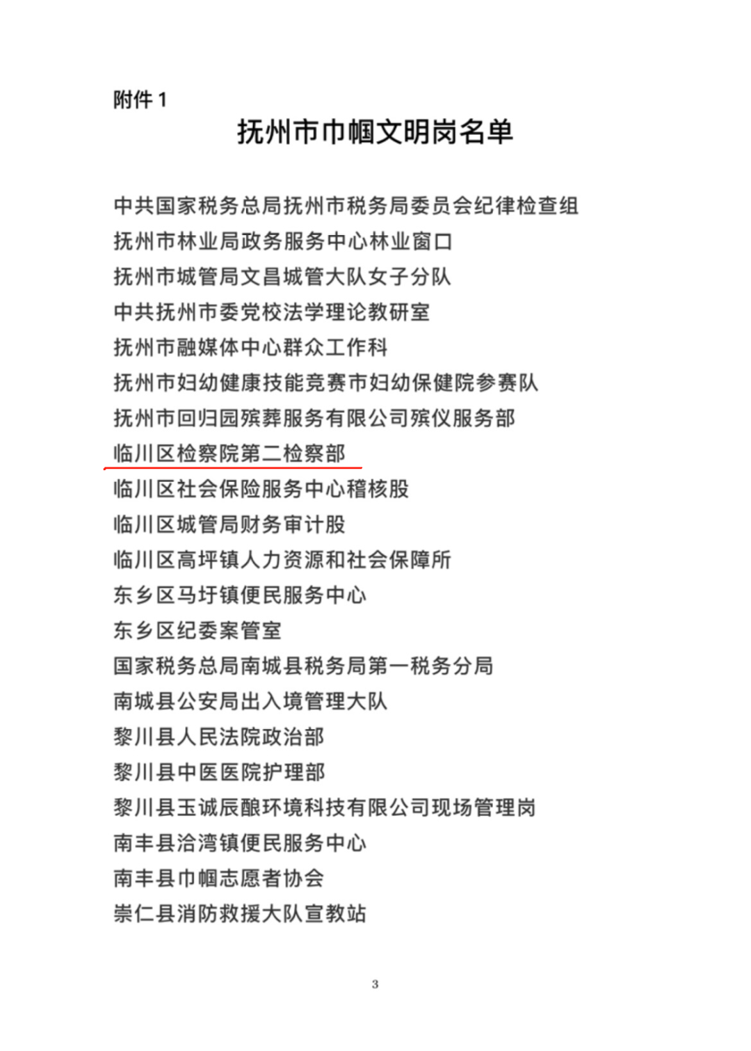 临川区人民检察院第二检察部荣获“抚州市巾帼文明岗”称号
