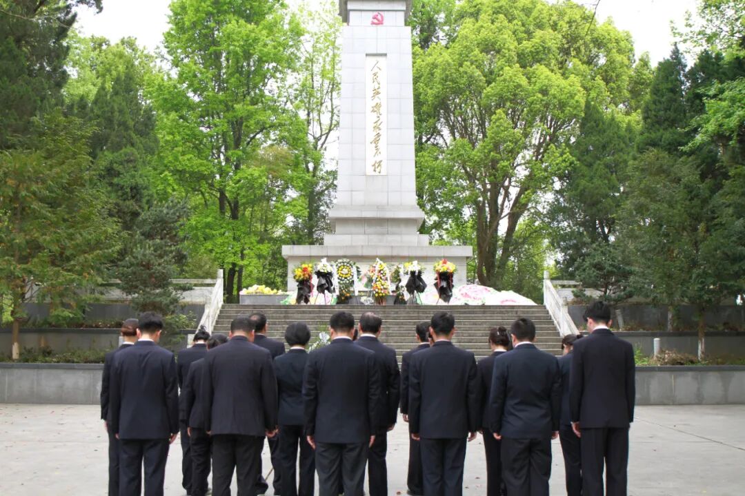 清风寄哀思,翠柏传敬意。革命烈士纪念塔前,全体干警整齐列队、神情肃穆,向烈士英魂默哀缅怀、敬献花篮,寄托无限哀思。随后,大家绕烈士纪念塔缓步行走、深情瞻仰,表达对革命先烈的敬仰和思念之情。