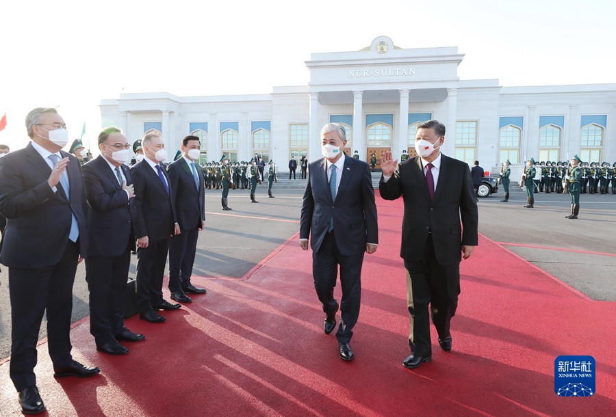 当地时间9月14日下午,国家主席习近平乘专机抵达努尔苏丹,开始对哈萨克斯坦共和国进行国事访问。习近平主席同托卡耶夫总统签署并发表《中华人民共和国和哈萨克斯坦共和国建交30周年联合声明》,宣布为中哈构建世代友好、高度互信、休戚与共的命运共同体目标和愿景而努力。新华社记者 丁林 摄