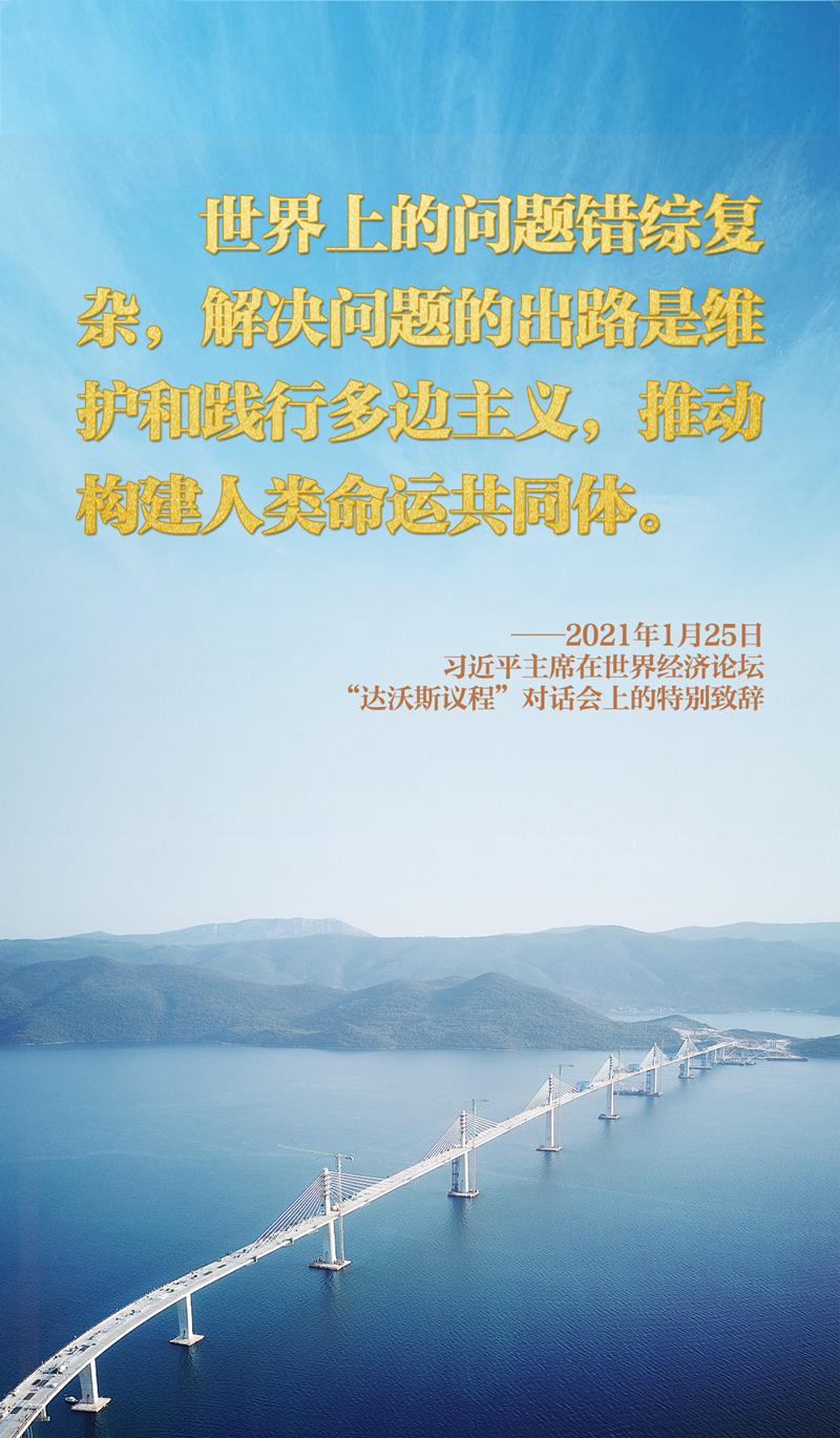 “我们今天所作的每一个抉择、采取的每一项行动,都将决定世界的未来。”一次次深刻阐述,一次次真诚呼吁,习近平主席在达沃斯论坛发出的声音穿越时空,为解决人类面临的共同问题贡献智慧与力量,为变乱交织的世界提供宝贵的确定性和稳定性。新时代中国将与世界上一切进步力量一道,坚定维护和践行多边主义,向着构建人类命运共同体的正确方向,让和平与发展的阳光普照大地,携手开创更加美好的未来。