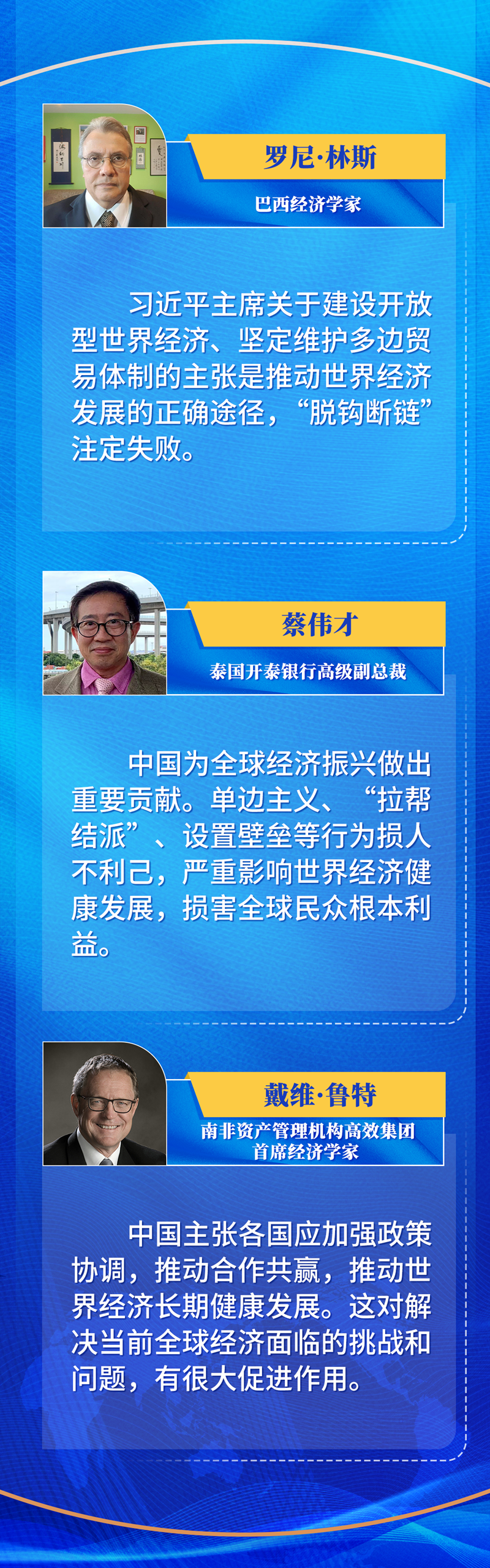 坚持拆墙而不筑墙、开放而不隔绝、融合而不脱钩,推动构建开放型世界经济,才能将世界经济带出低谷。
