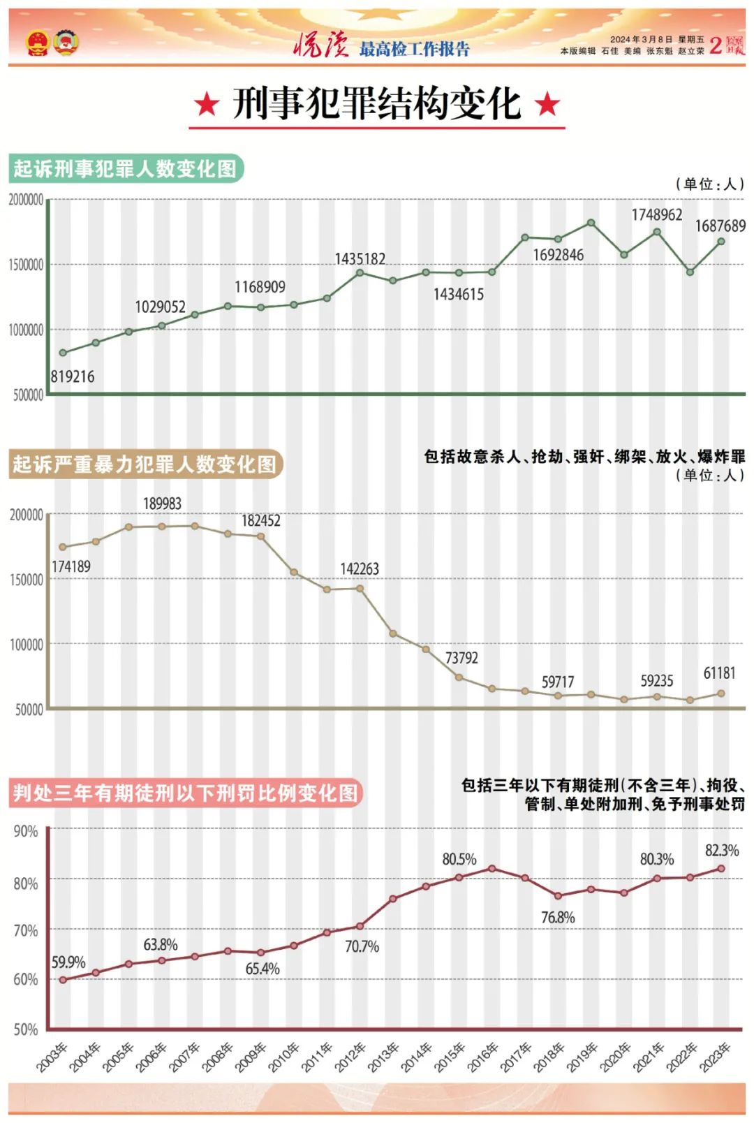 3月8日,最高人民检察院检察长应勇在第十四届全国人民代表大会第二次会议上作最高人民检察院工作报告。过去一年,检察机关各项工作有哪些新举措、新亮点?24张图示带你速览!