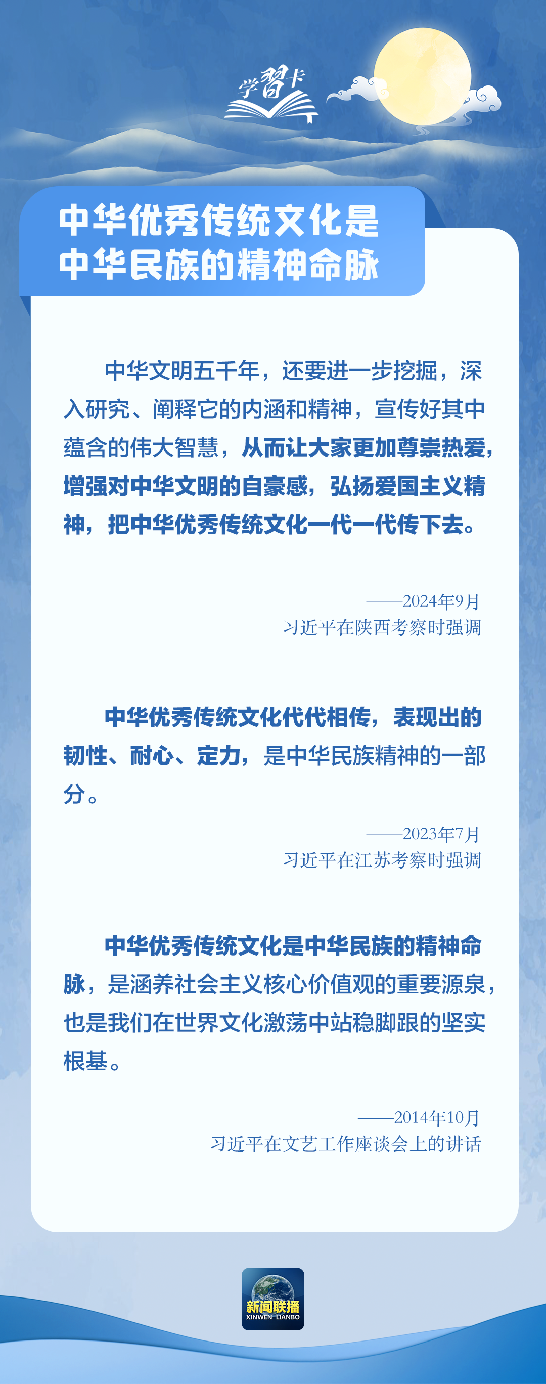 中华优秀传统文化是中华文明的智慧结晶和精华所在,是中华民族的精神命脉,是我们在世界文化激荡中站稳脚跟的根基。