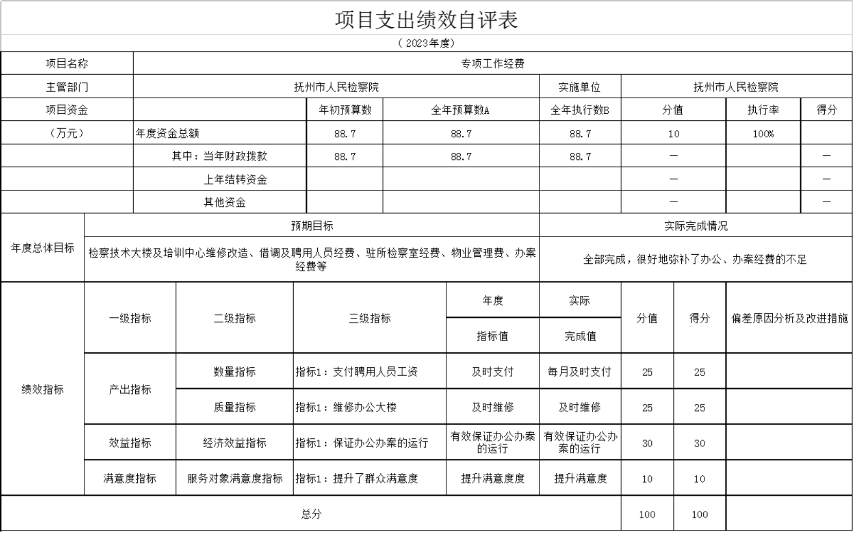 本单位聘用制书记员经费项目支出绩效自评表如下: