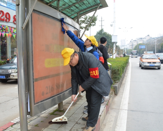 3月6日,在第54个“学雷锋”活动之际,为了发扬“奉献、友爱、互助、进步”的志愿精神,市检察院青年志愿者对附近公交站台进行卫生清扫。