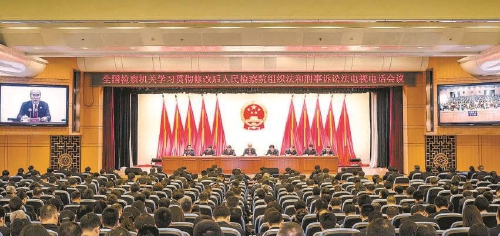 11月5日,最高人民检察院召开全国检察机关学习贯彻修改后人民检察院组织法和刑事诉讼法电视电话会议,最高人民检察院党组书记、检察长张军出席会议并讲话。检察日报全媒体记者程丁摄
