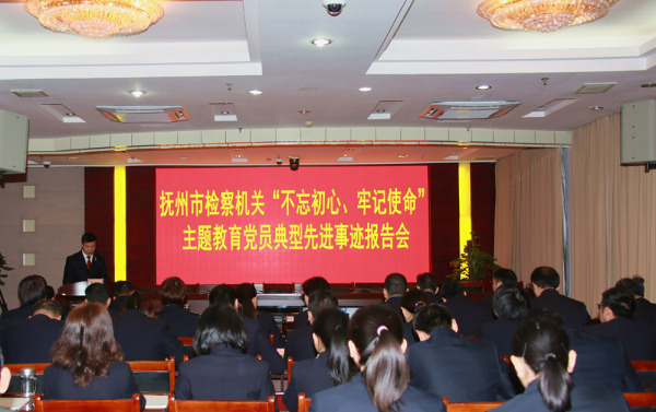 11月29日,抚州市检察机关“不忘初心、牢记使命”主题教育党员典型先进事迹报告会召开。这是一场催人奋进、鼓舞人心的报告会。4名来自全市检察机关的党员代表,结合自身工作实际,从不同角度、不同侧面,围绕“服务大局、执法为民、爱岗敬业、忠诚奉献”分别作了精彩的发言。抚州市检察院党组书记、检察长宋智勇出席报告会,党组成员、政治部主任陈志祥主持报告会并讲话。抚州市人民检察院机关全体干警在现场聆听,各基层检察院干警通过视频方式收听收看。