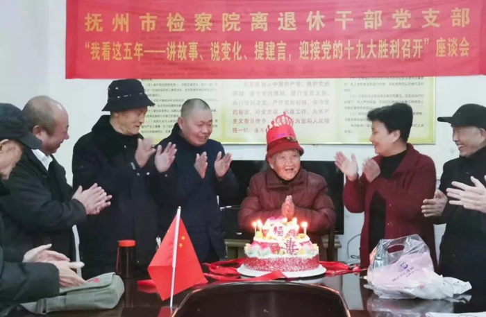 近日,抚州市人民检察院为老党员危贞卿祝贺90寿辰。
