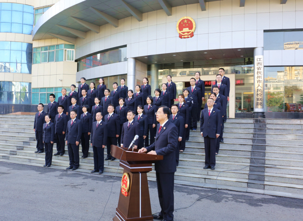 为彰显宪法权威,激励和教育检察人员忠于宪法、遵守宪法、维护宪法,根据《全国人大常委会关于实行宪法宣誓制度的决定》和《江西省实施宪法宣誓制度办法》的规定,11月18日上午,抚州市人民检察院举行宪法宣誓仪式,党组书记、检察长宋智勇主持仪式并领誓。
