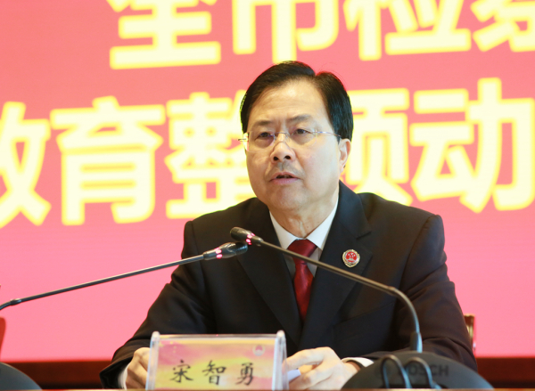 宋智勇检察长指出,开展政法队伍教育整顿工作,是今年检察工作的大事要事。全市检察机关和全体检察人员一定要深刻领会开展政法队伍教育整顿的内涵实质和深远意义,进一步深化思想认识,提高政治站位,结合全市正在开展的影响发展环境突出问题专项整治,围绕“筑牢政治忠诚、清除害群之马、整治顽瘴痼疾、弘扬英模精神”四项任务,全面打造忠诚干净担当的检察铁军。