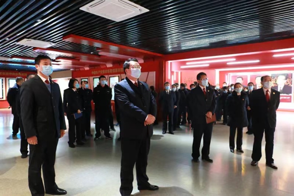 在廉政教育馆,干警依次参观各个展厅,了解党中央和省市推进党风廉政建设和反腐败工作的经验和成效,观看严重违纪违法典型案例展示、犯罪人员忏悔视频。在宣誓厅,全体党员干部面对鲜红的党旗,郑重宣誓,重温入党誓词,进一步坚定理想信念,铭记初心使命。