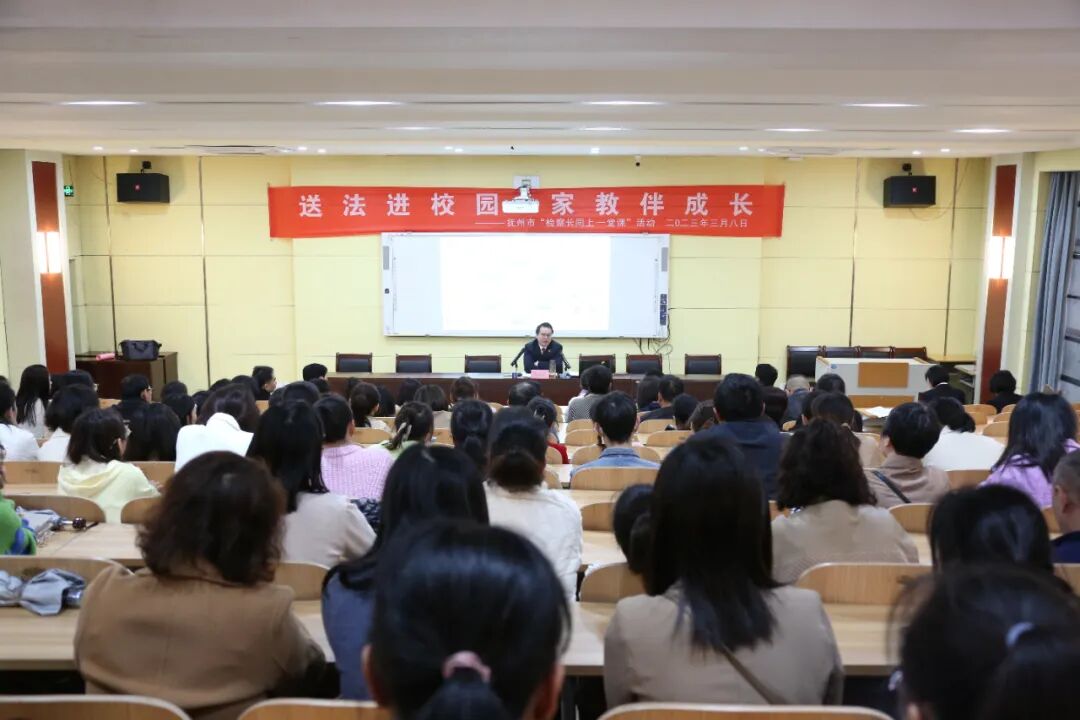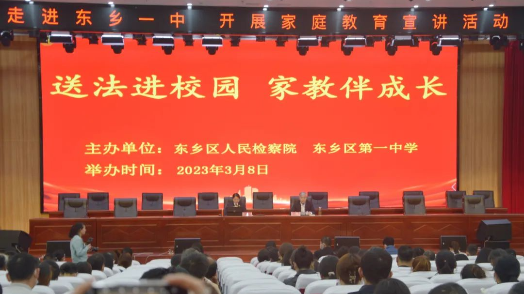在“三八”国际妇女节之际,抚州市、县两级检察机关12名检察长在同一时间,走进不同校园,共同以“送法进校园,家教伴成长”为主题给教师和家长送上节日的法治大餐。