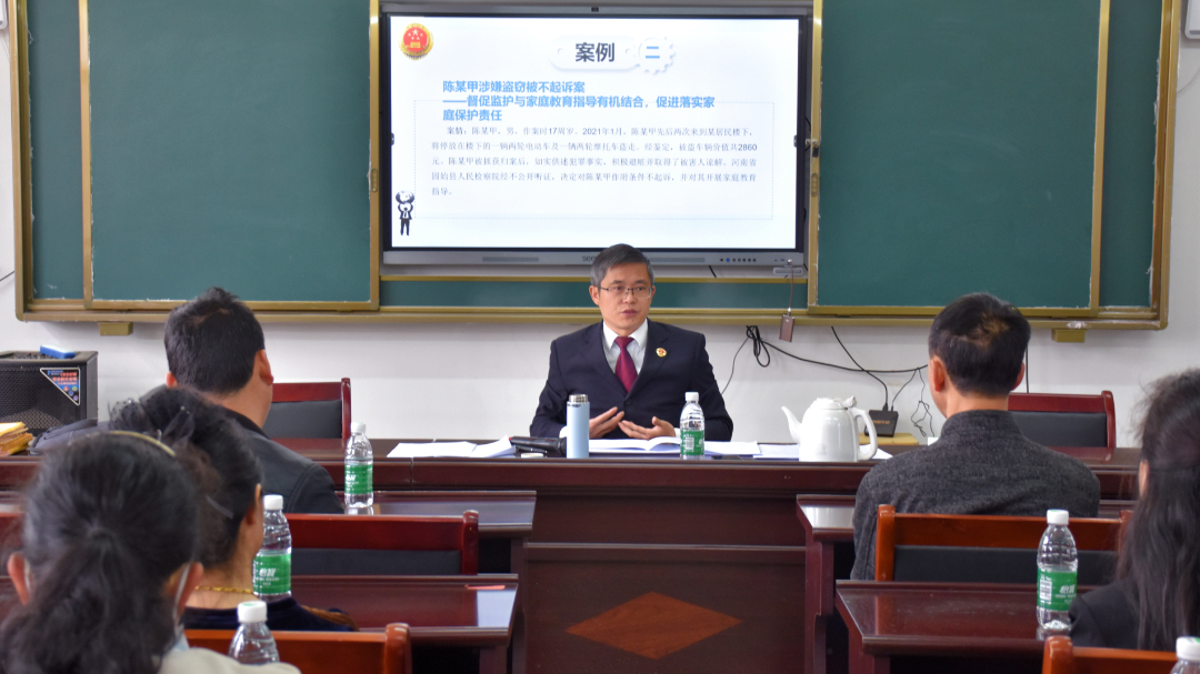 温珍奎检察长围绕《中华人民共和国家庭教育促进法》,结合典型事例,详细解读了家庭教育的心理误区、方式误区,深刻阐述了家长应该如何树立正确的家庭教育观。他强调,要正确对待孩子成长过程中的青春期与叛逆期,增进情感交流,突出亲历性、示范性教育,与孩子共同成长,共同形成良性的、积极的、向上的家庭教育氛围。