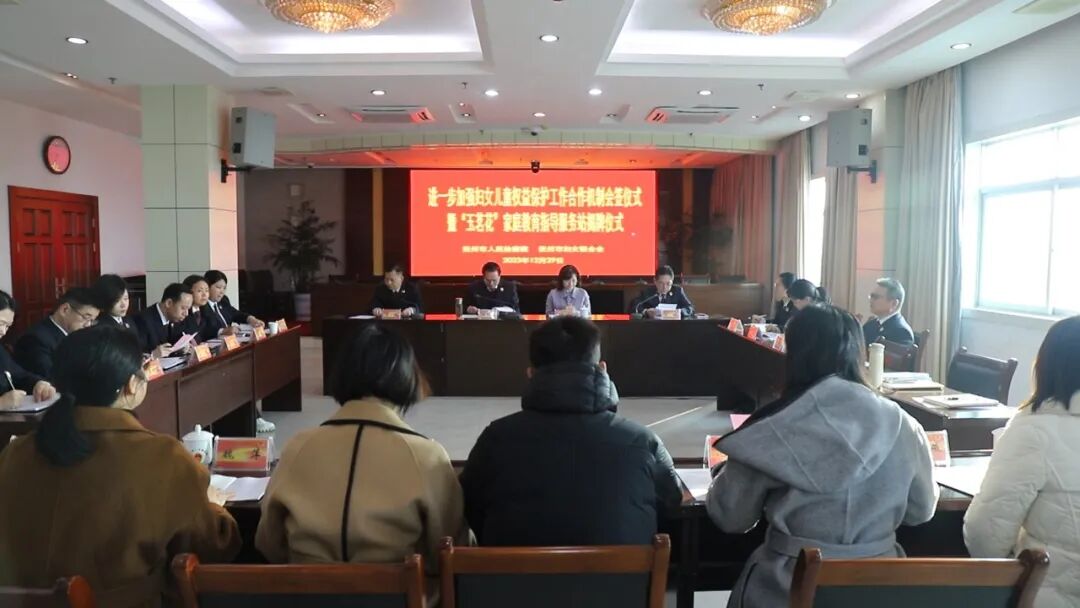 为深入学习贯彻党的二十大精神和习近平总书记考察江西重要讲话精神,进一步落实《最高人民检察院 中华全国妇女联合会关于建立共同推动保护妇女儿童权益工作合作机制的通知》要求,更好维护妇女儿童合法权益,12月29日上午,进一步加强妇女儿童权益保护工作合作机制会签仪式暨“玉茗花”家庭教育指导服务站揭牌仪式在抚州市人民检察院举行。
