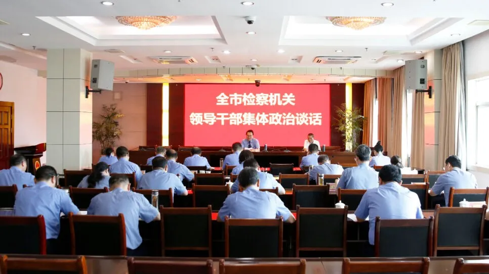 为贯彻落实中央、省委和市委关于开展政治谈话加强对“一把手”和领导班子监督的有关部署要求,进一步压紧压实政治责任,传导从严管党治检压力,6月14日,抚州市人民检察院党组书记、检察长温珍奎对市检察院领导班子成员、各基层检察院检察长和两级检察院其他市管干部开展集体政治谈话。市纪委市监委驻市检察院纪检监察组三级调研员黄国权同志受邀参会。