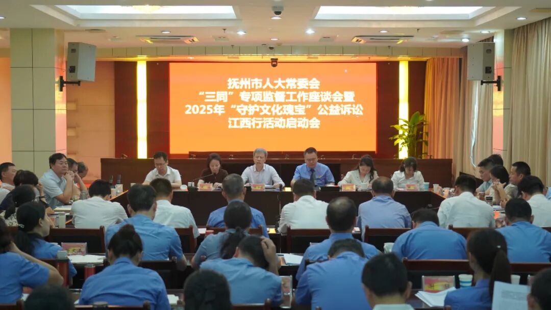 5月14日,市人大常委会“三同”专项监督工作座谈会暨2025年“守护文化瑰宝”公益诉讼江西行活动启动会在市检察院召开。市人大常委会副主任、市委秘书长赵荣贵,市人民检察院党组书记、检察长温珍奎出席并讲话。市人大监察司法委组成人员、市直有关单位、各县(区)人大常委会及检察院有关同志参会。