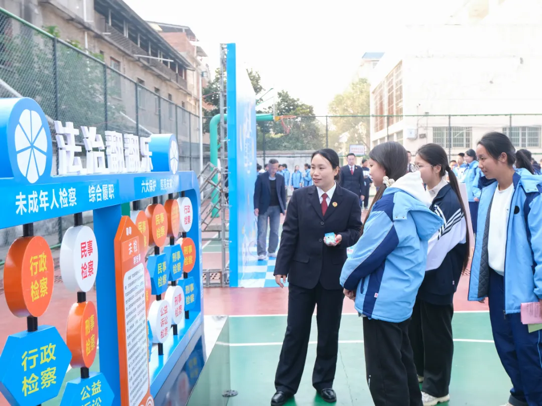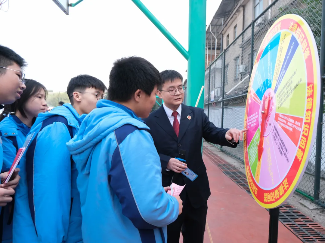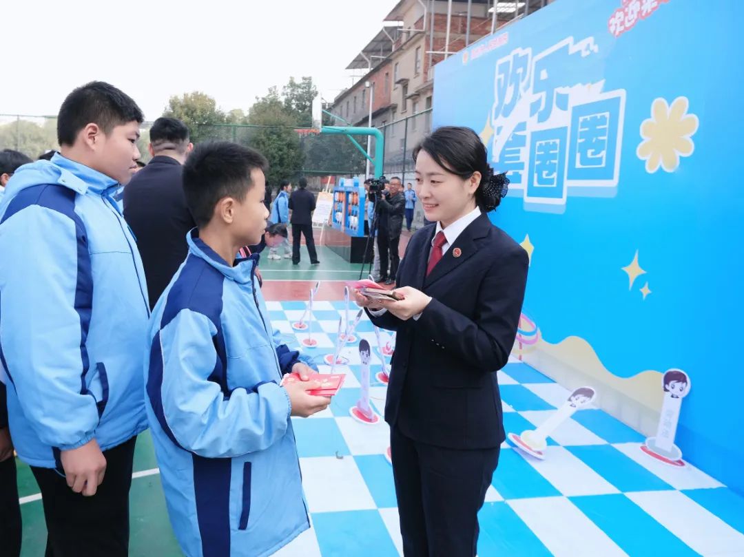 篮球场上,“法治游园会”热闹开场,“互动问答”“法典藏‘谜’”“法治翻翻乐”“欢乐套圈圈”……丰富多彩的法治互动游戏,让同学们在轻松氛围中尊法学法守法用法。