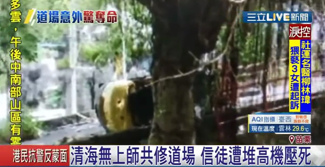 现场民众反映,赖姓信徒被堆高机砸中头部,伤势严重,当场死亡。